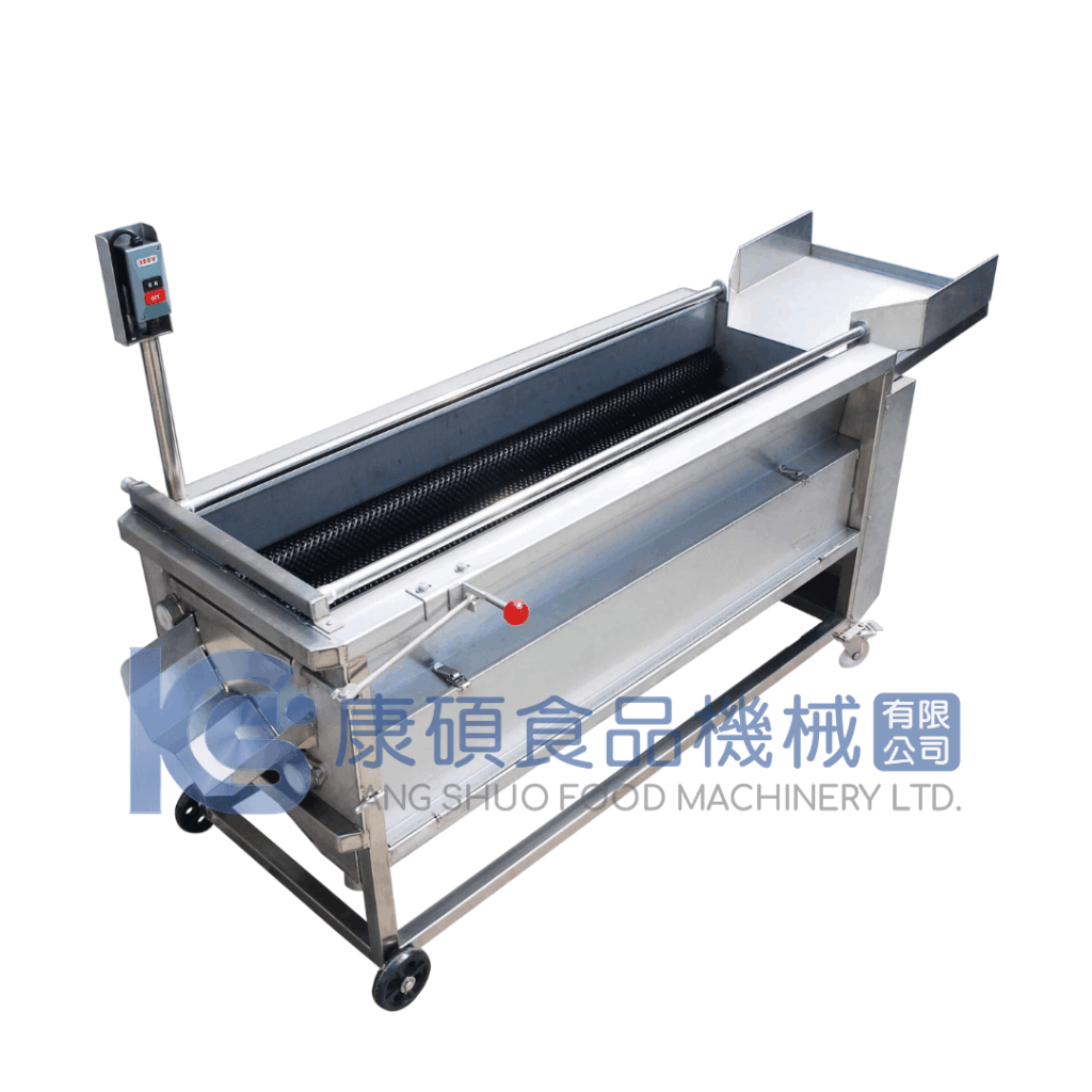 - 對混線品項的彈性:馬鈴薯、胡蘿蔔、地瓜、蕃薯的表皮質地不同,毛刷材質、是否搭配金鋼砂、滾軸數量與轉速,會影響去皮速度與外觀。能調整轉速與水量的食品機械機型,通常更好對應不同品項,降低「某些品項去不乾淨、某些品項削太深」的落差。
